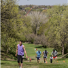 Race Course – You will start up by the large tree close to the bathrooms at the top of the hill, follow the single track down the hill to the flat grassy part and then come up the right side of tut hill up to the two little trees where you will go left back to the start. – Race Course