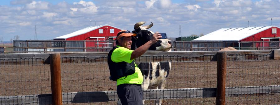 Some of the many new friends you'll meet while running are Jale the horse, Dali the donkey, Tendu the potbelly pig, Peter the white peacock, Button the chicken, Yoda the duck, Chamomile the turkey, Maybelle the cow, Cheerio the sheep, Gelato the goat, and Lizzie the big pig!