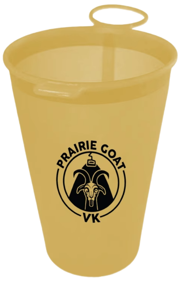 Stay hydrated with the Prairie Goat VK 200ml Eco-Cup. This collapsible, pocket-sized silicone cup is perfect for cupless racing and quick Coke shots at the summit.